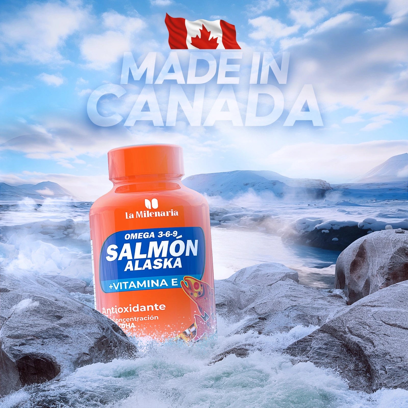 El OMEGA 3 6 9 SALMÓN DE ALASKA es un suplemento que combina ácidos grasos Omega-3, Omega-6 y Omega-9, provenientes del salmón de Alaska, diseñado para apoyar la salud del sistema cardiovascular
