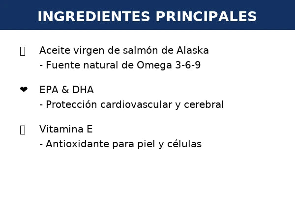“Gracias a su pureza y origen natural, el Omega 3-6-9 de Salmón de Alaska con Vitamina E es un aliado clave para la salud cardiovascular, el cuidado cerebral y la protección de la piel.”